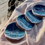 Bring the calm of the coast to your coffee table. Each coaster in this four-piece set is handmade with ocean-inspired resin art, capturing the movement and colour of the sea. No two waves are ever the same, making every set completely unique.